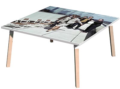 Ekstra Pöydän jalat taittuvat ja sen voi laittaa seinälle tauluksi.